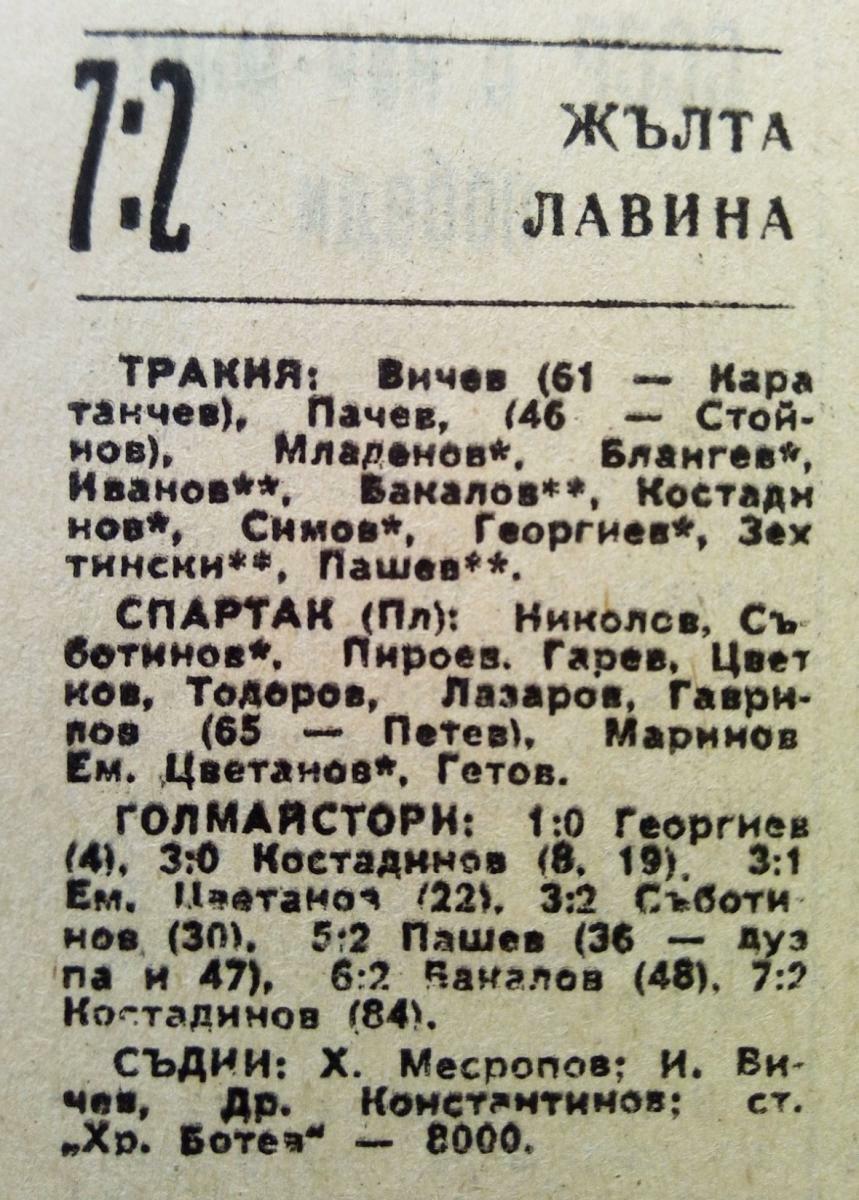 «Тракия» Пловдив - «Спартак» Плевен - 7:2