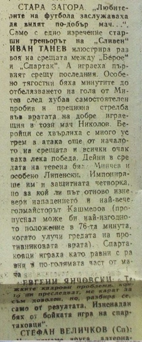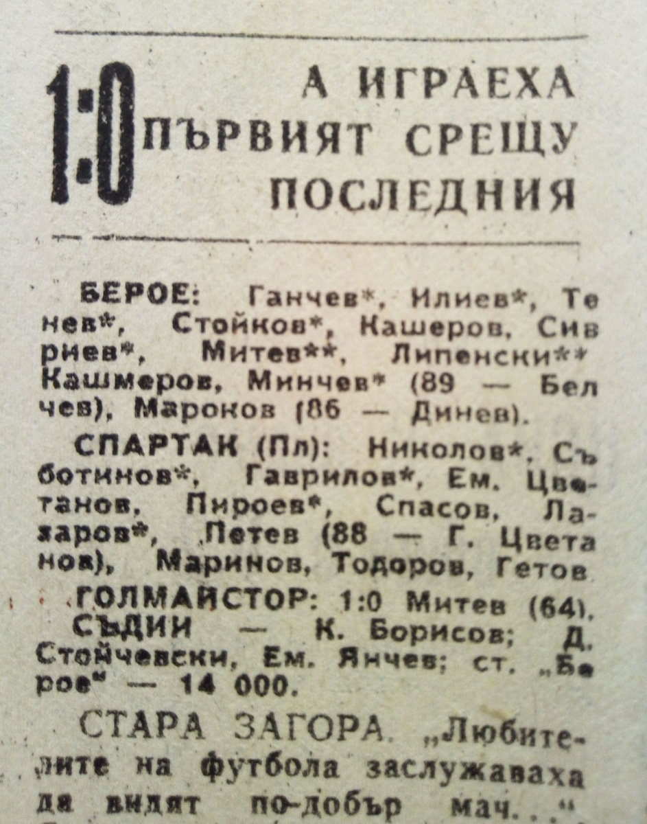 «Берое» Стара-Загора - «Спартак» Плевен - 1:0