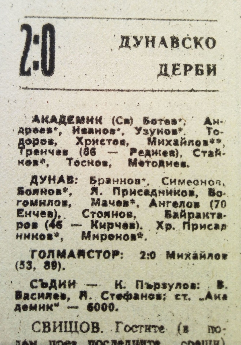 «Академик» Свиштов - «Дунав» Русе - 2:0