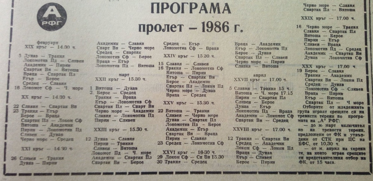 Чемпионат Болгарии 1985/86. Группа А