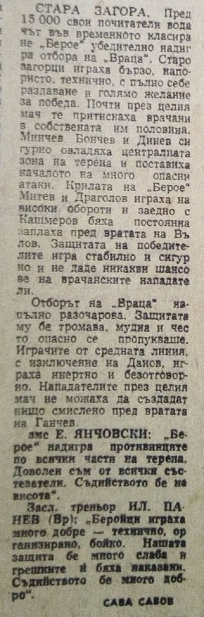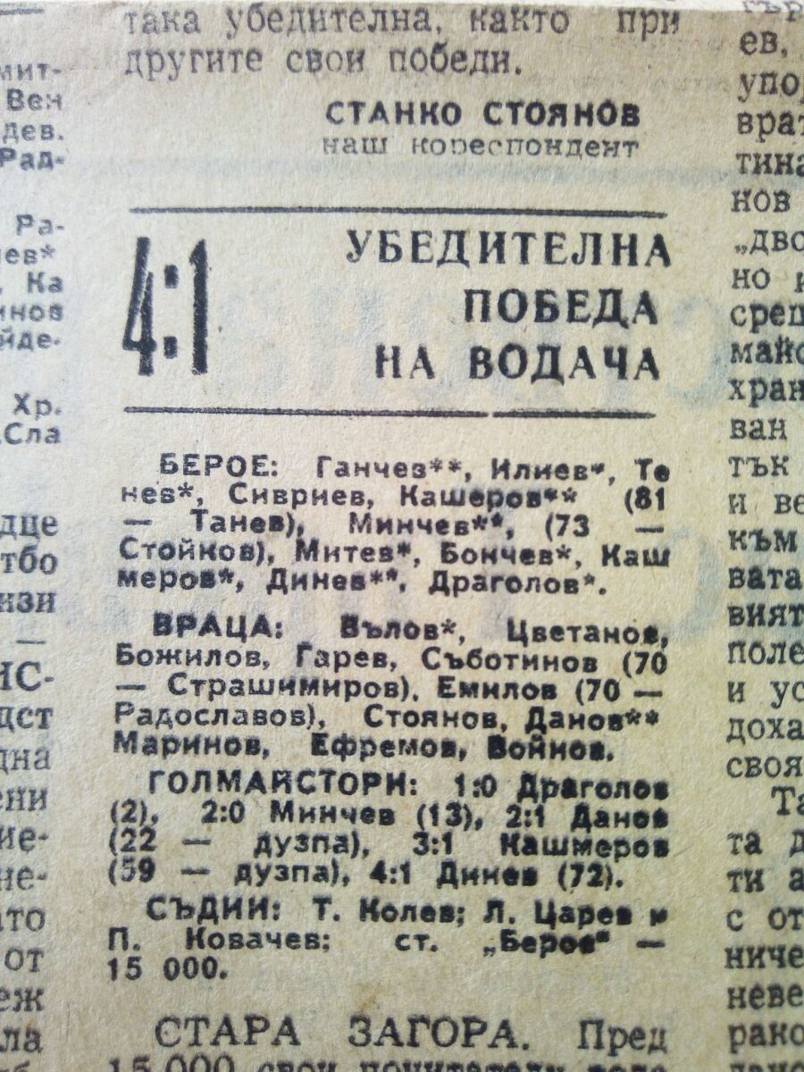 «Берое» Стара-Загора - «Враца» Враца - 4:1