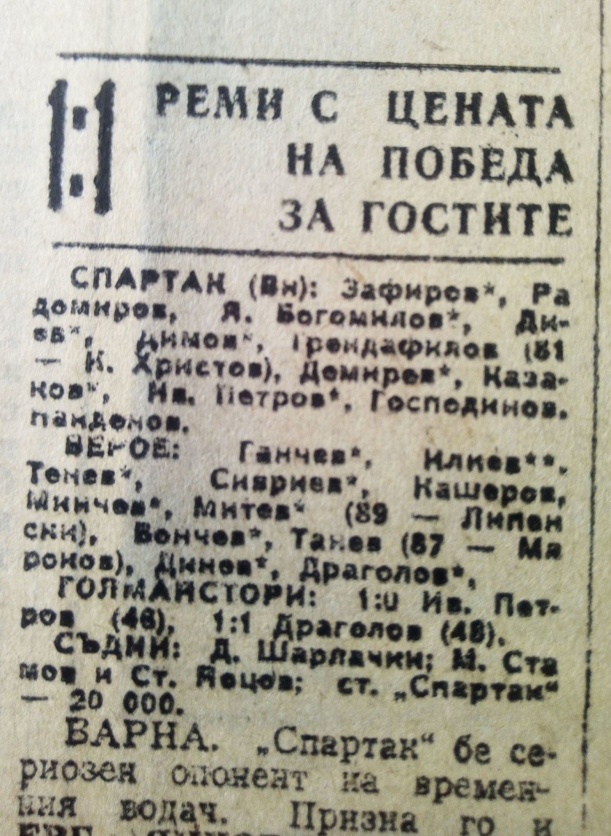 «Спартак» Варна - «Берое» Стара-Загора - 1:1