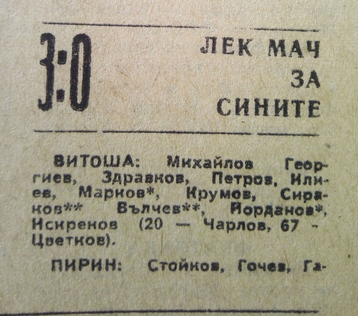 «Витоша» София - «Пирин» Благоевград - 3:0
