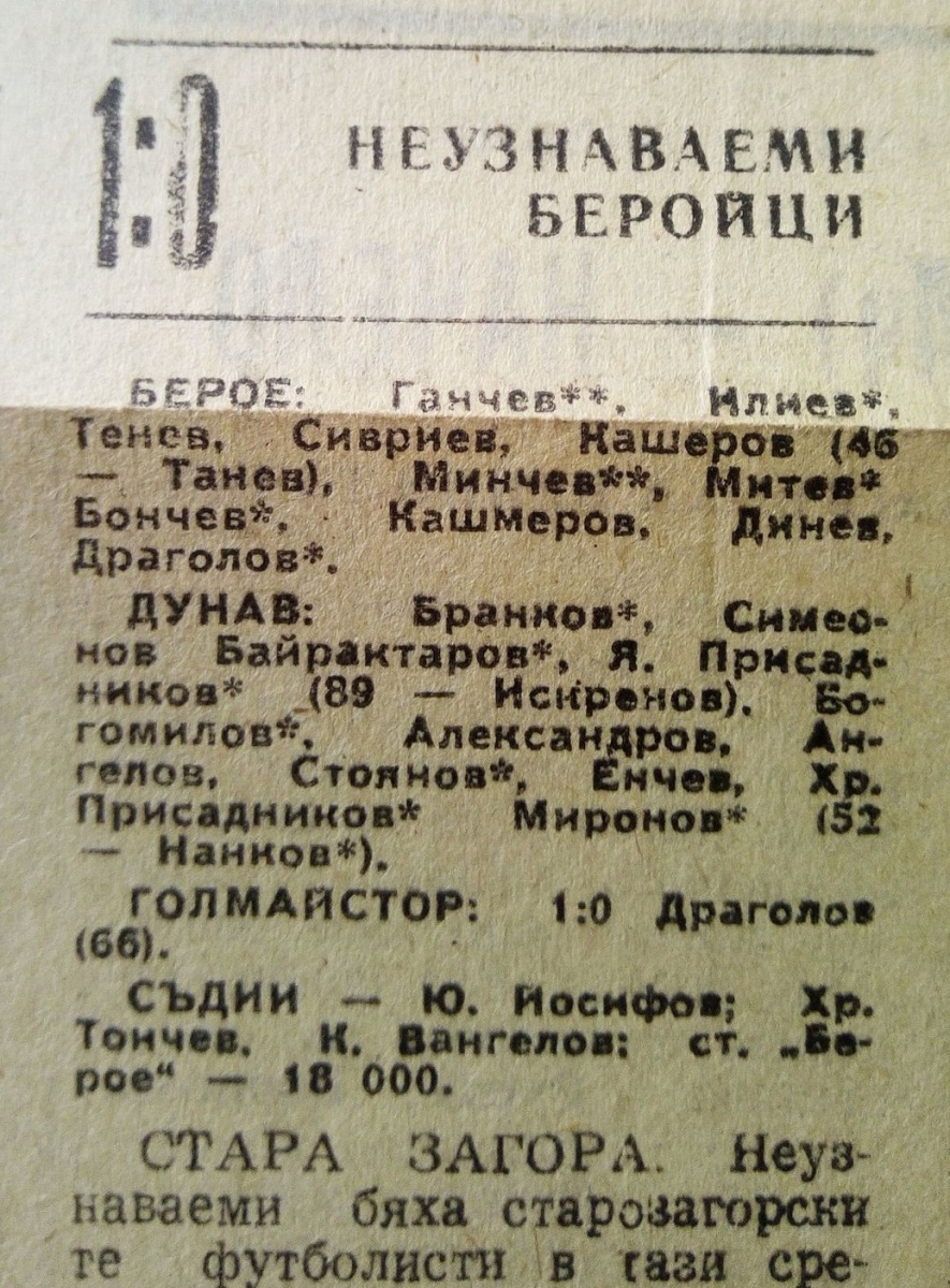 «Берое» Стара-Загора - «Дунав» Русе - 1:0