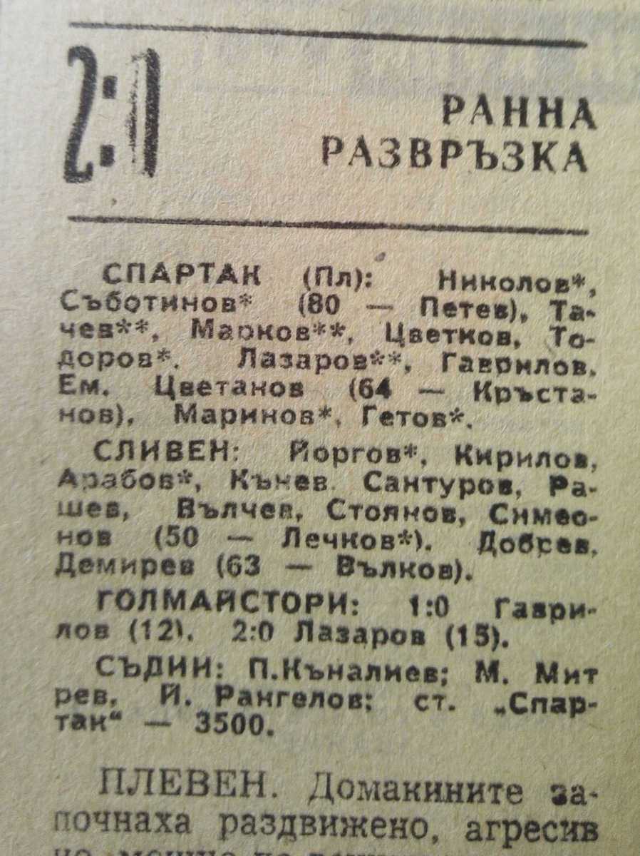 «Спартак» Плевен - «Сливен» Сливен - 2:0