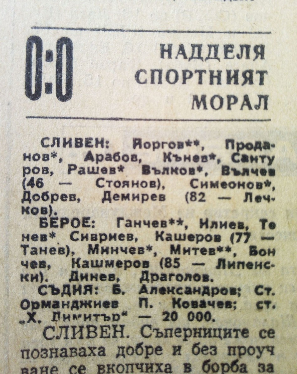 «Сливен» Сливен - «Берое» Стара-Загора - 0:0