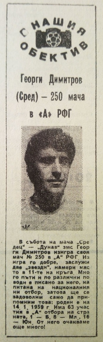 Георги Димитров (Средец) провёл свой 250-й матч в высшем дивизионе \«А\» РФГ.