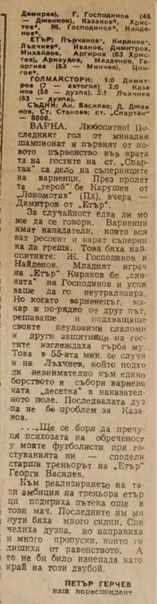 «Спартак» Варна - «Этыр» Велико-Тырново - 2:1