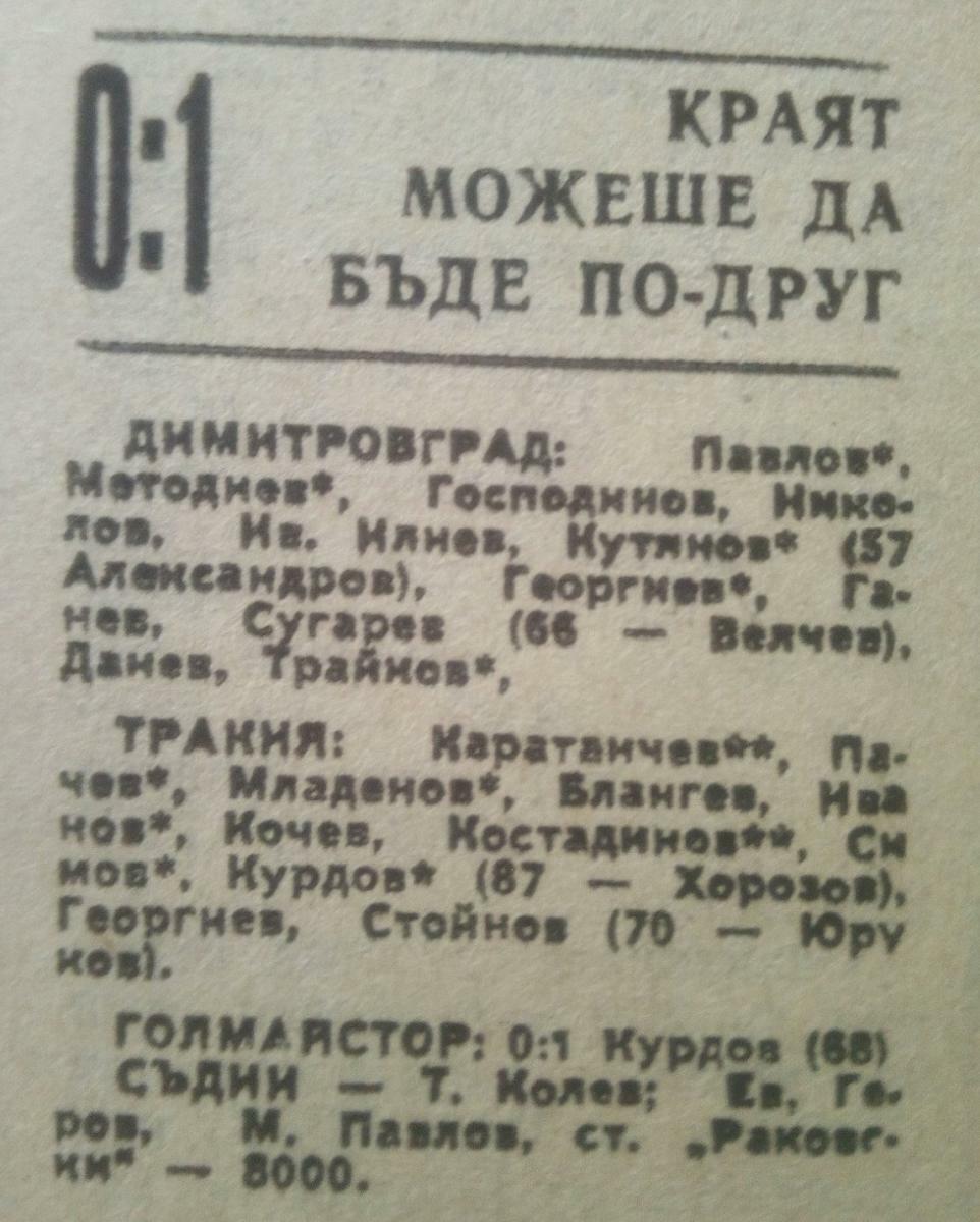 «Димитровград» Димитровград - «Тракия» Пловдив - 0:1