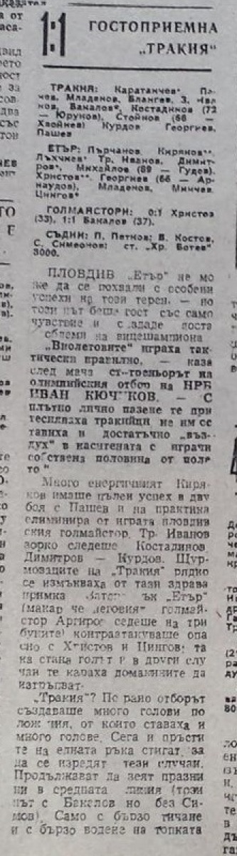 «Тракия» Пловдив - «Этыр» Велико-Тырново - 1:1