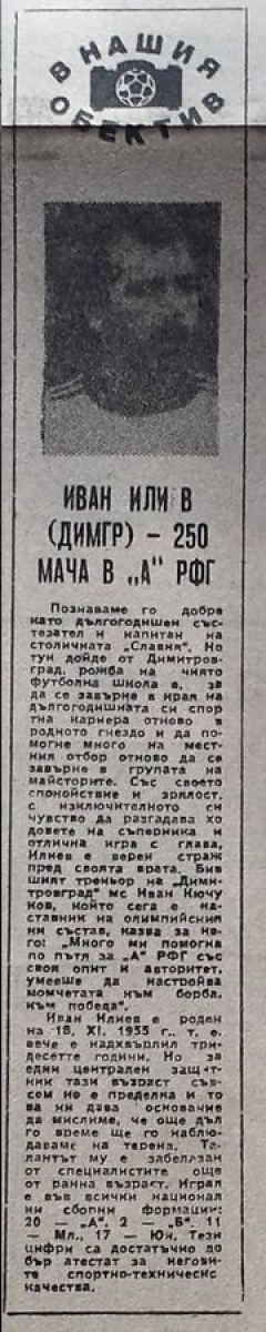 Иван Илиев (Димитровград) провёл свой 250-й матч в высшем дивизионе \«А\» РФГ.