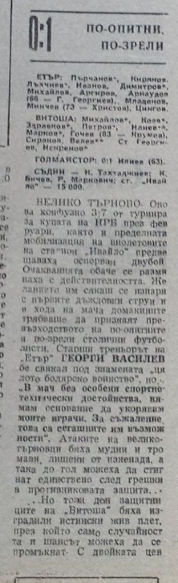 «Этыр» Велико-Тырново - «Витоша» София - 0:1