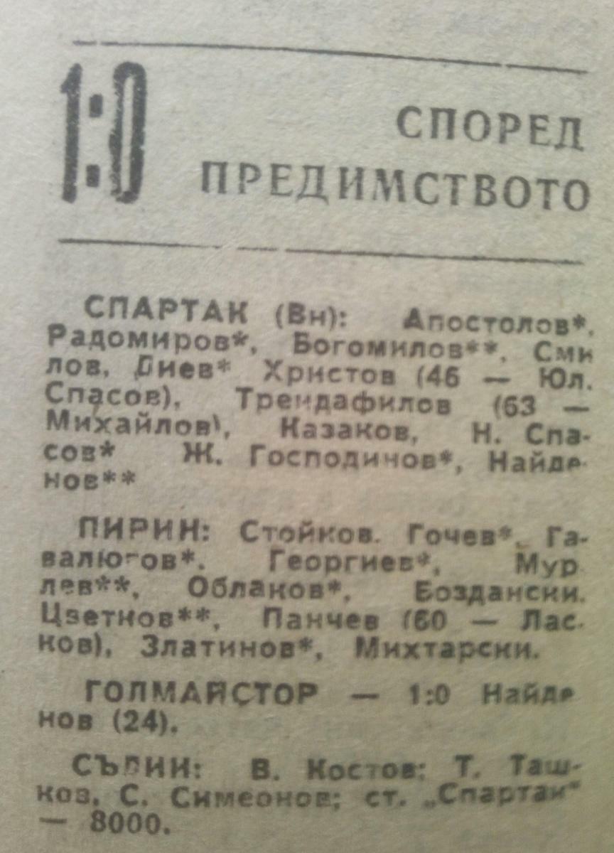 «Спартак» Варна - «Пирин» Благоевград - 1:0