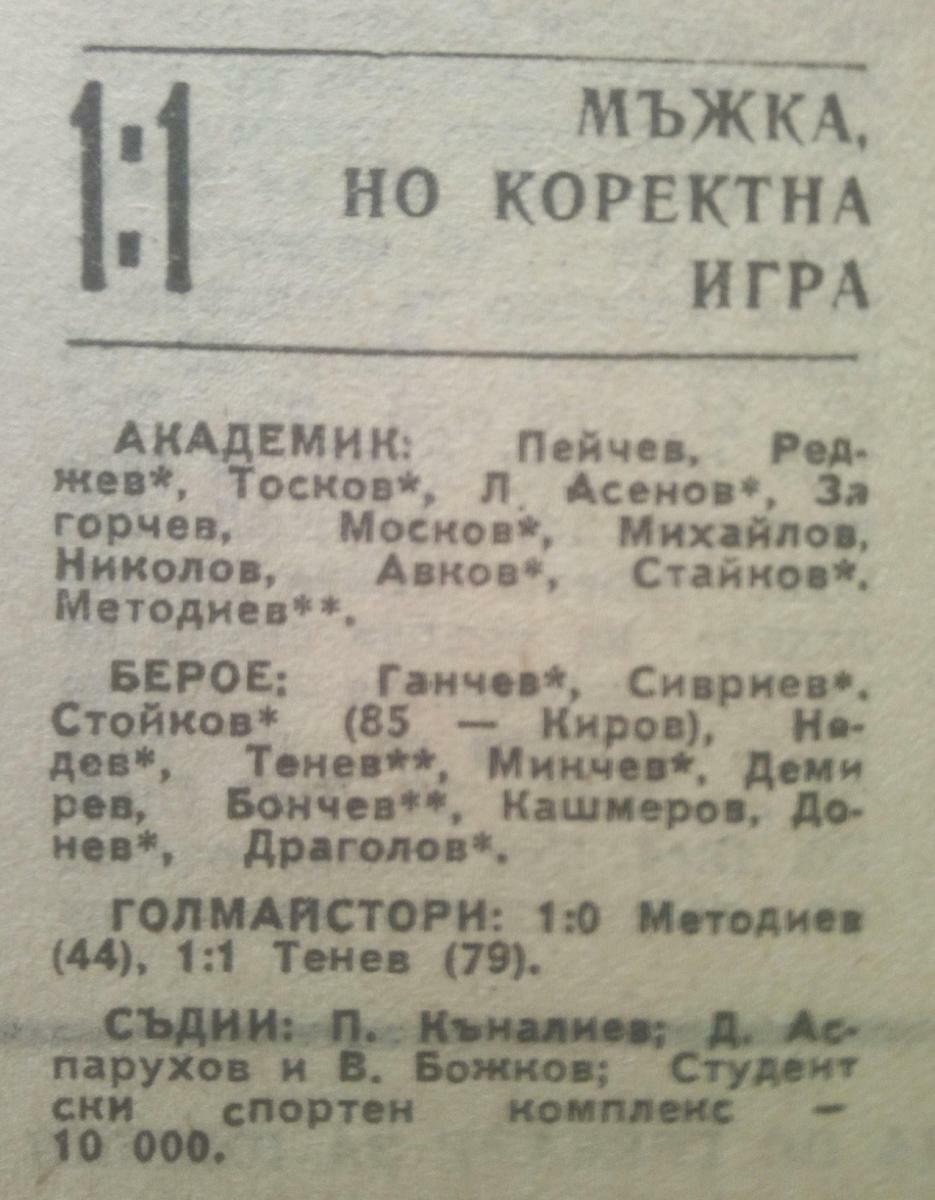 «Академик» Свиштов - «Берое» Стара-Загора - 1:1
