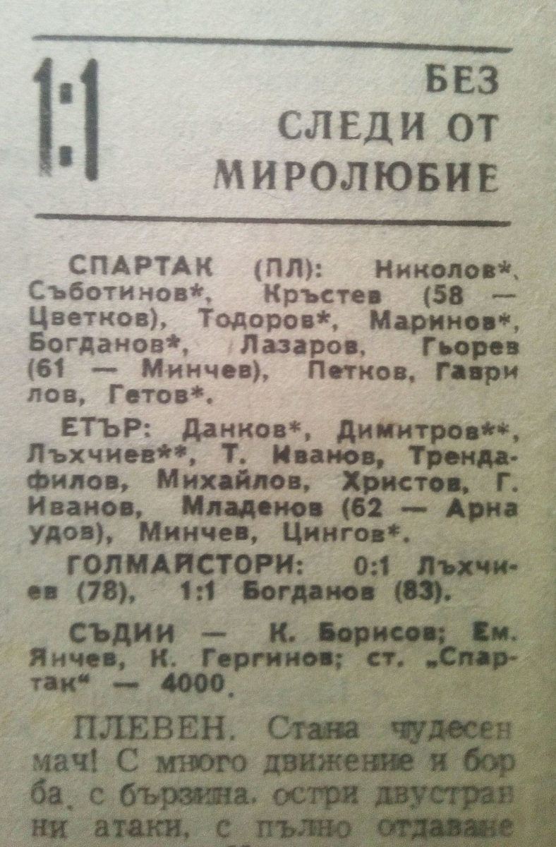 «Спартак» Плевен - «Этыр» Велико-Тырново - 1:1