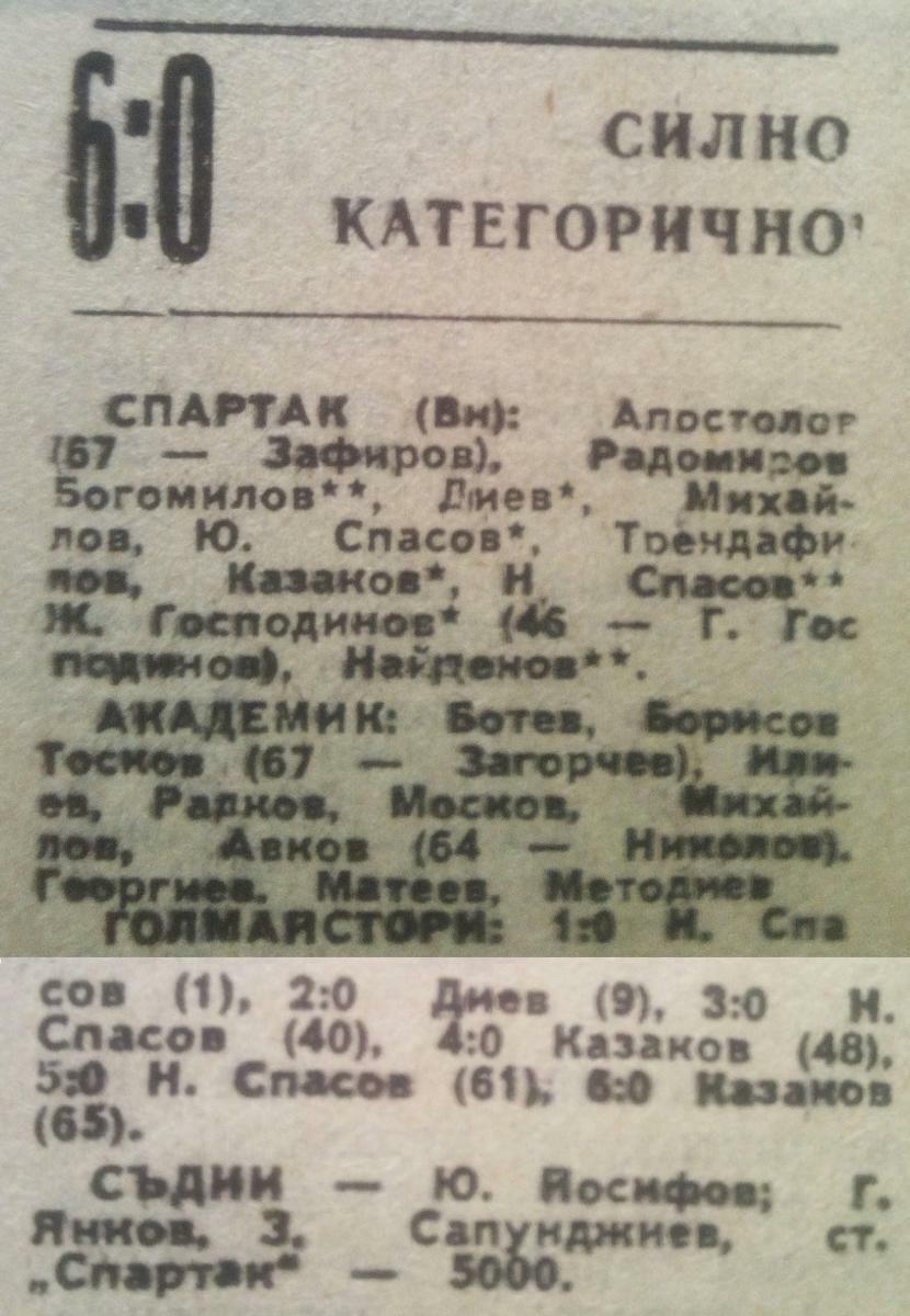 «Спартак» Варна - «Академик» Свиштов - 6:0