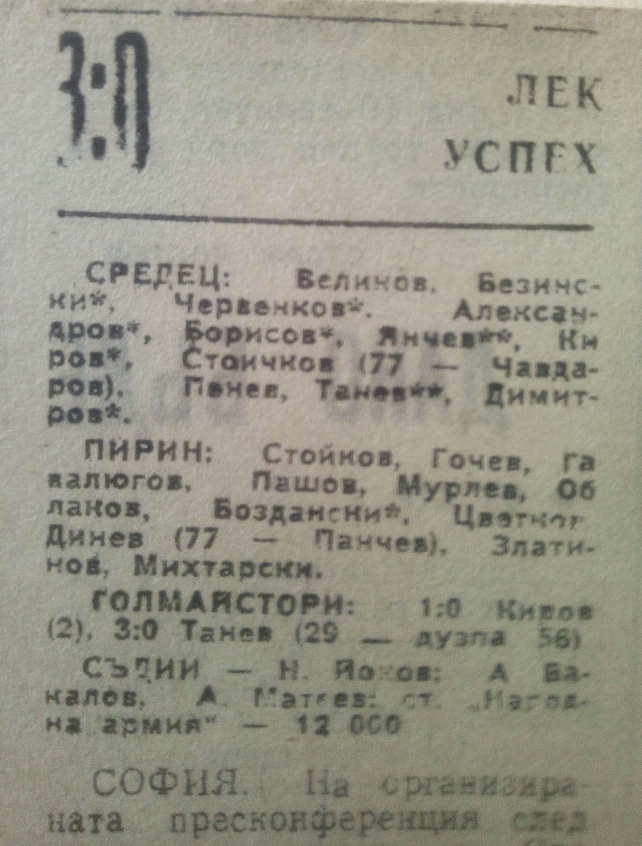 «Средец» София - «Пирин» Благоевград - 3:0
