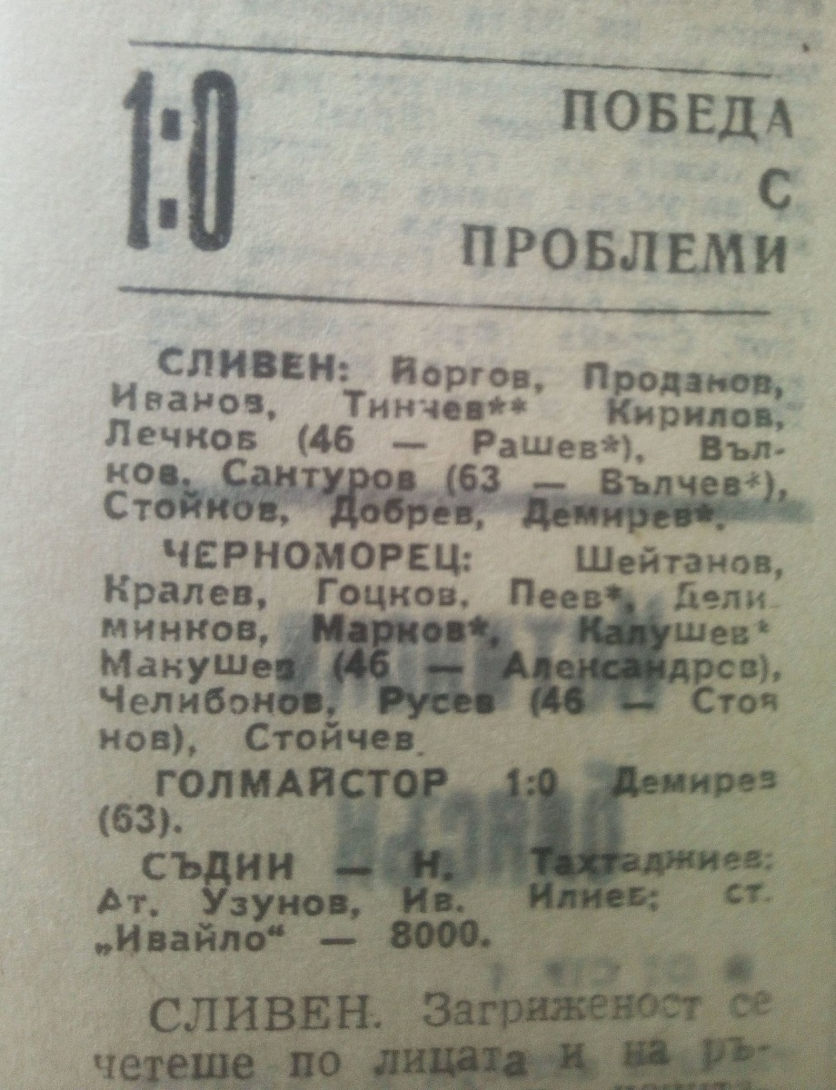 «Сливен» Сливен - «Черноморец» Бургас - 1:0