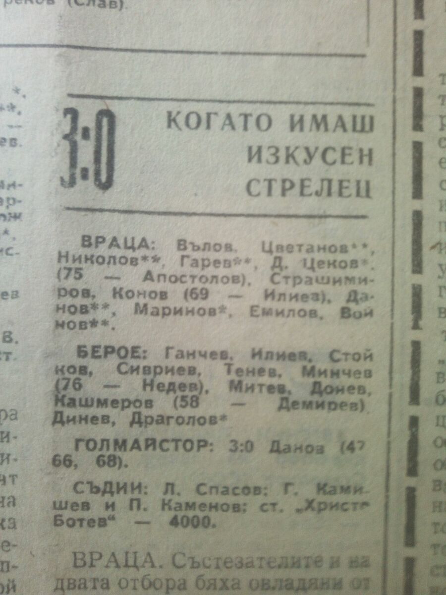 «Враца» Враца - «Берое» Стара-Загора - 3:0