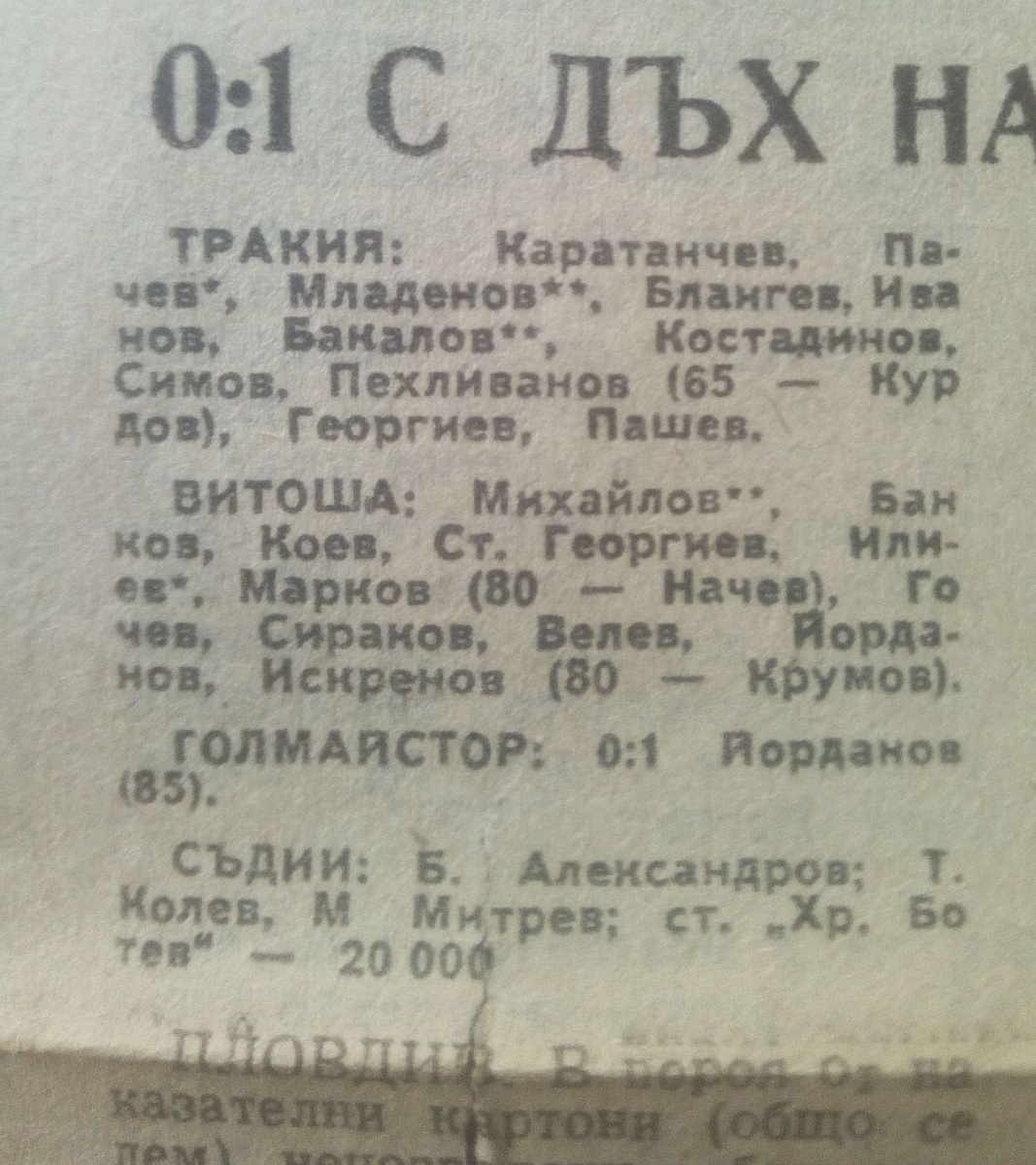 «Тракия» Пловдив - «Витоша» София - 0:1