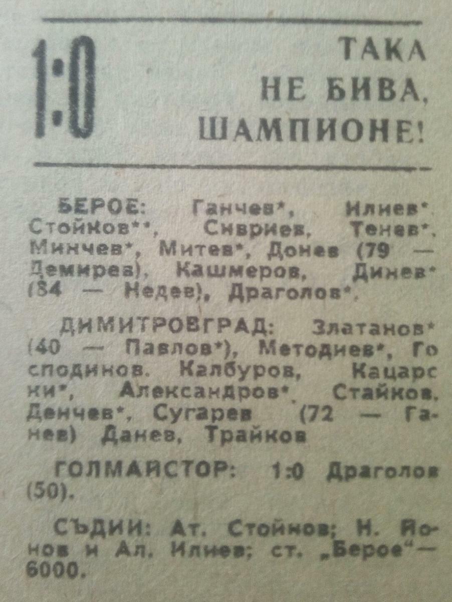 «Берое» Стара-Загора - «Димитровград» Димитровград - 1:0