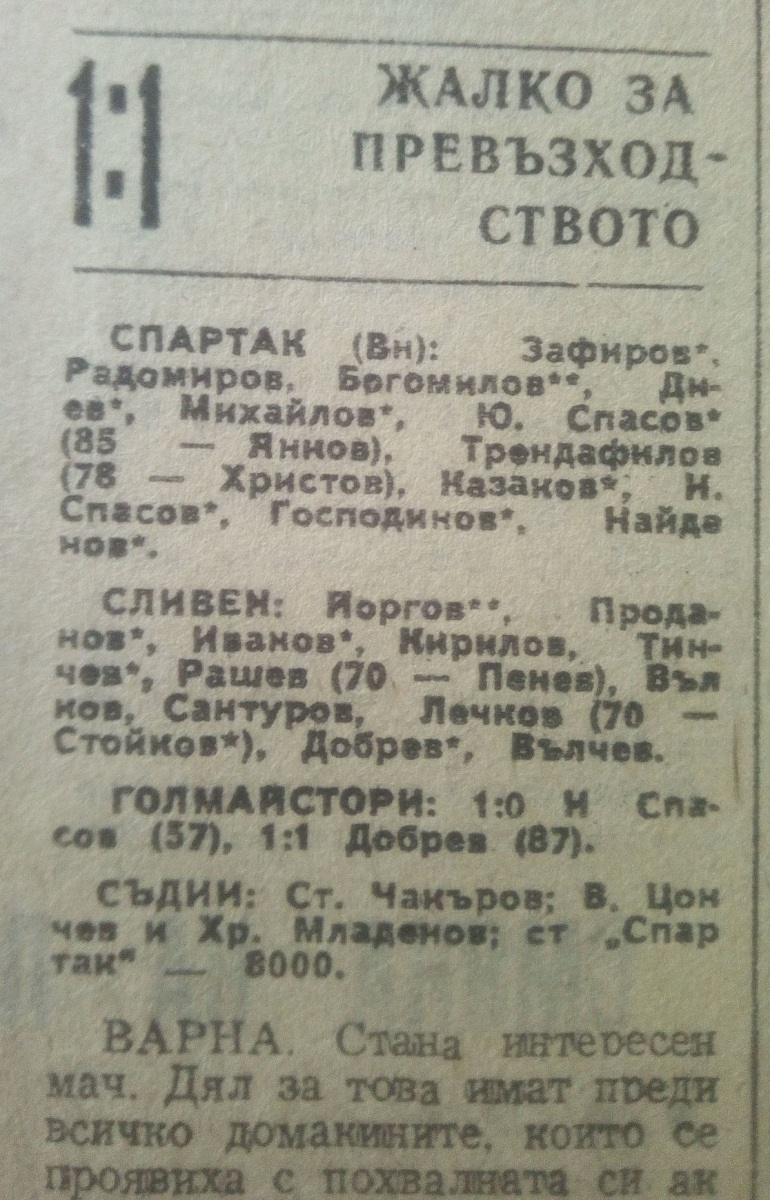Тенко Добрев (Сливен) провёл свой 200-й матч в высшем дивизионе \«А\» РФГ.
