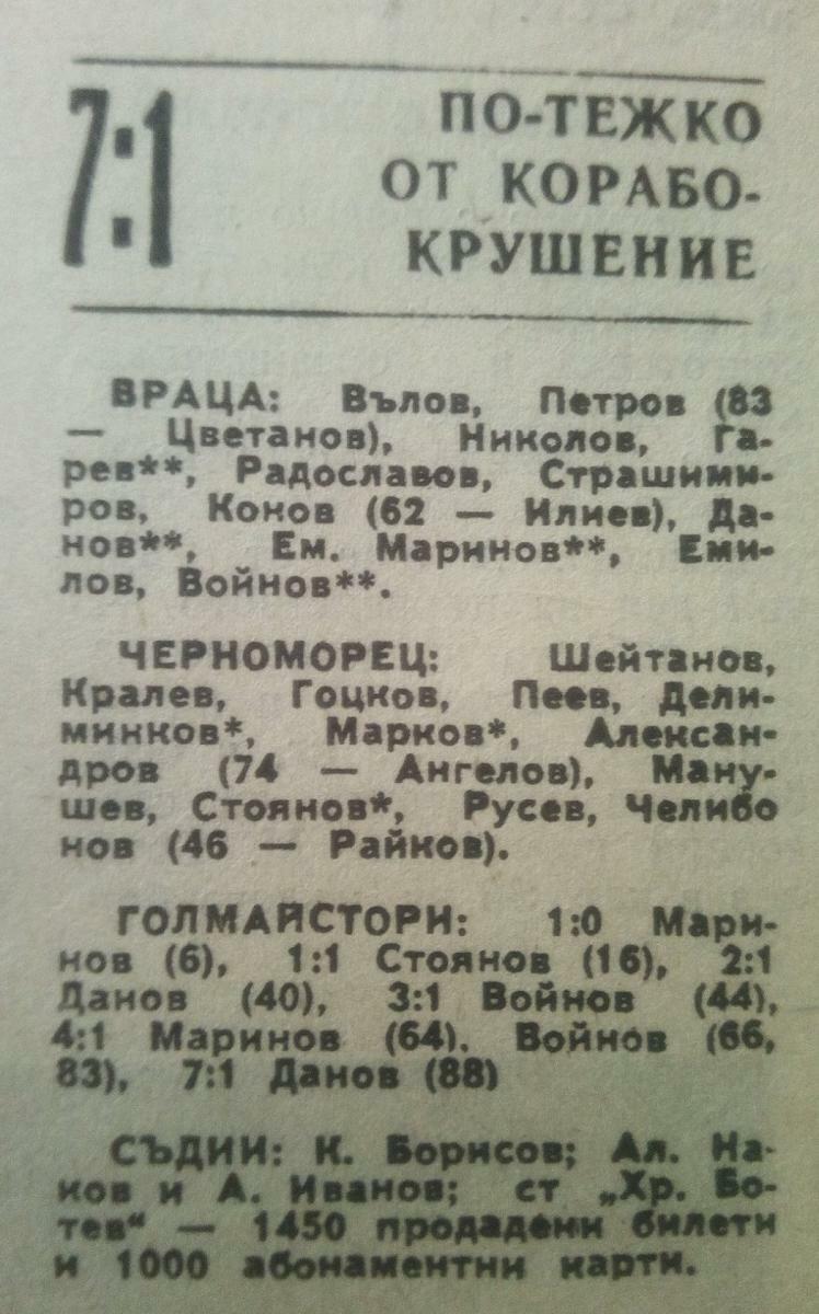 «Враца» Враца - «Черноморец» Бургас - 7:1