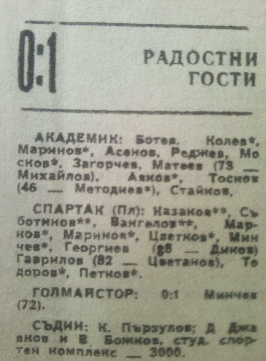 «Академик» Свиштов - «Спартак» Плевен - 0:1