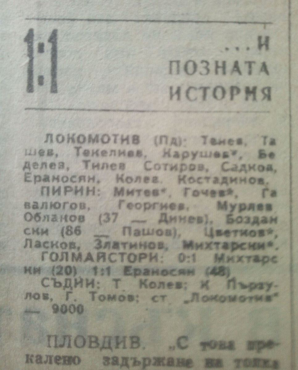 «Локомотив» Пловдив - «Пирин» Благоевград - 1:1