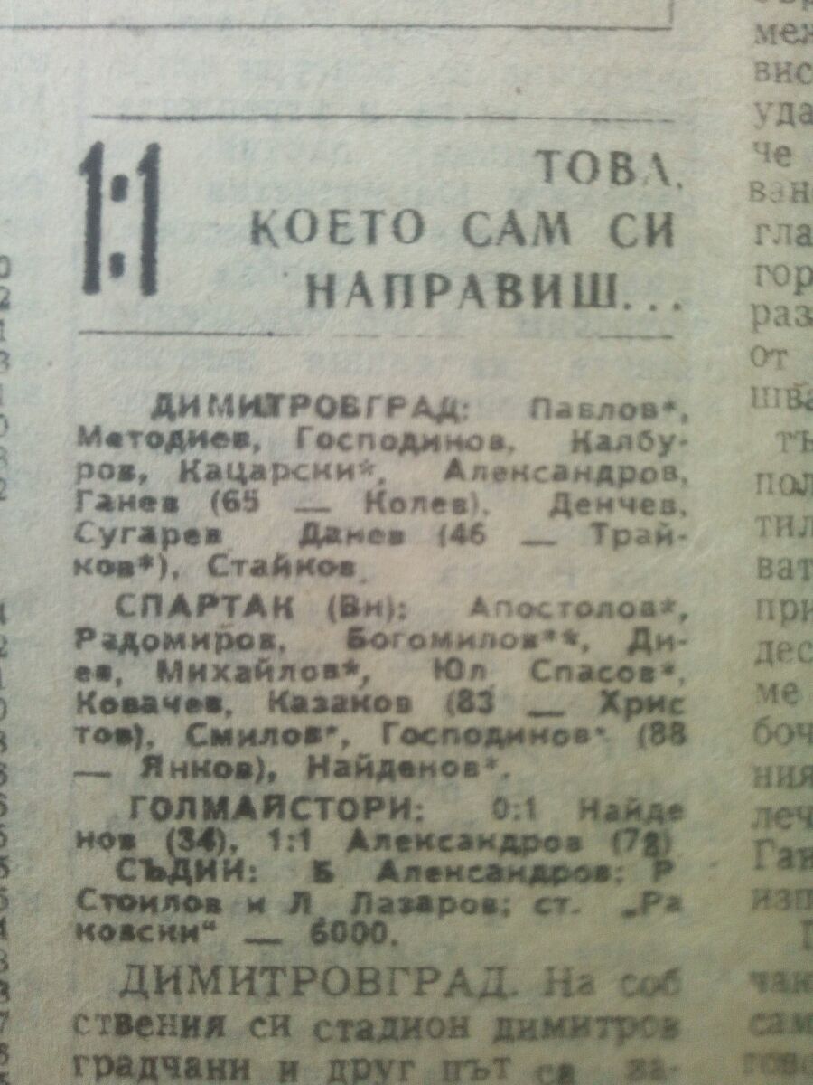 «Димитровград» Димитровград - «Спартак» Варна - 1:1
