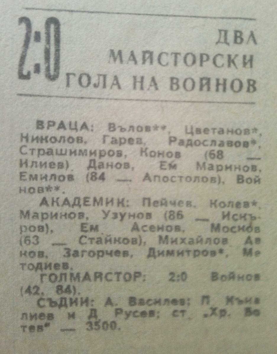 «Враца» Враца - «Академик» Свиштов - 2:0