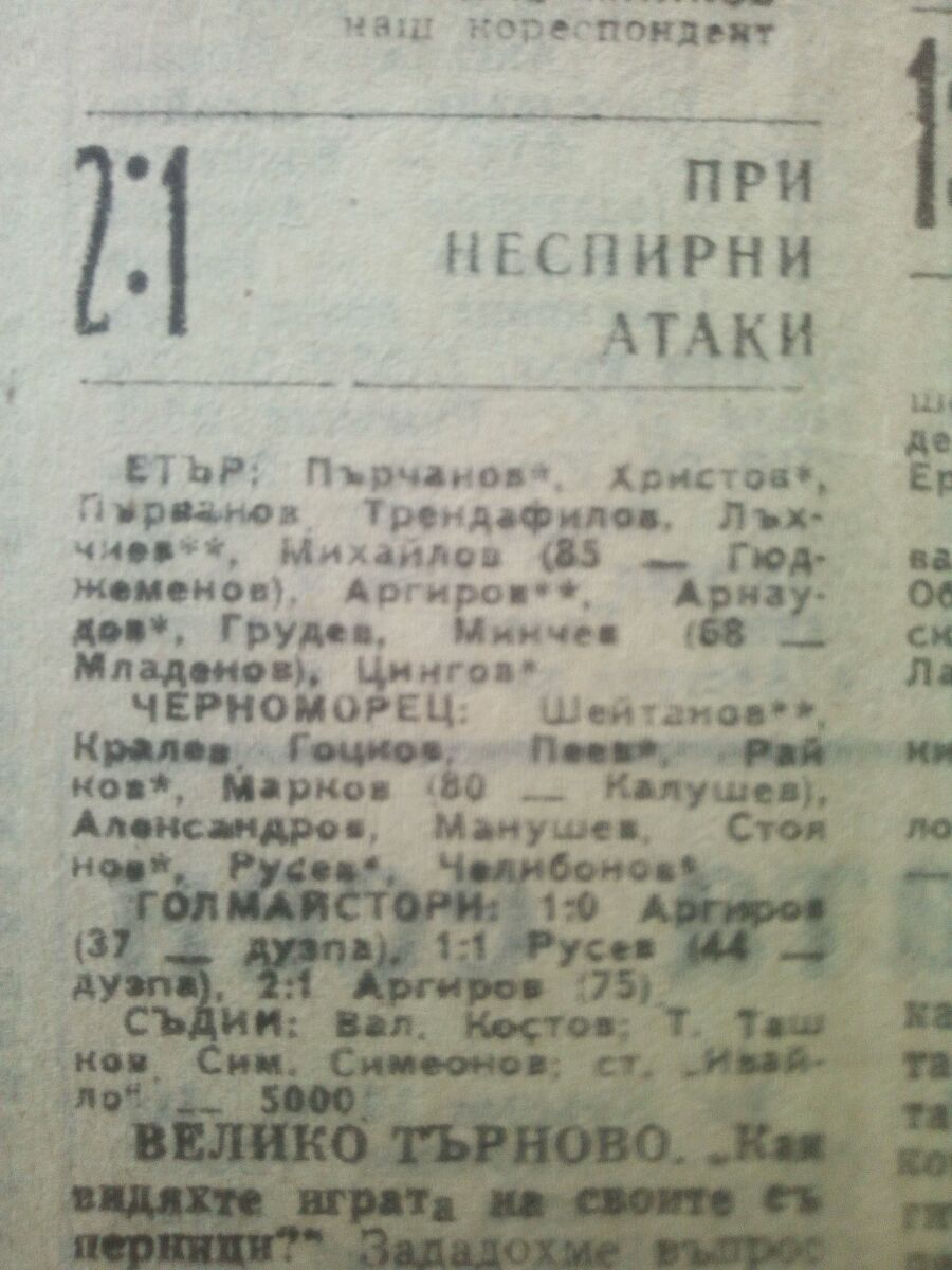 «Этыр» Велико-Тырново - «Черноморец» Бургас - 2:1