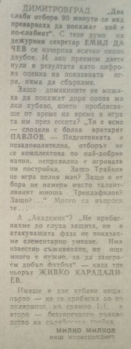«Димитровград» Димитровград - «Академик» Свиштов - 0:0