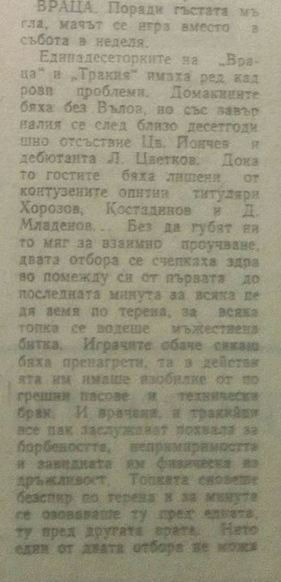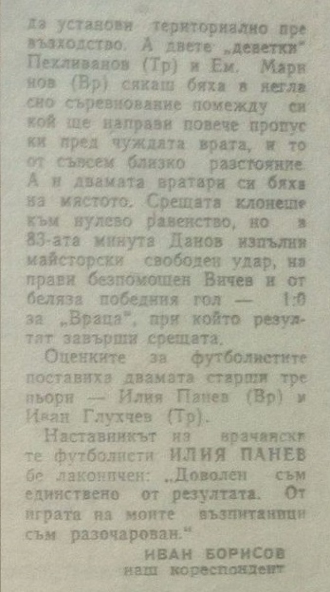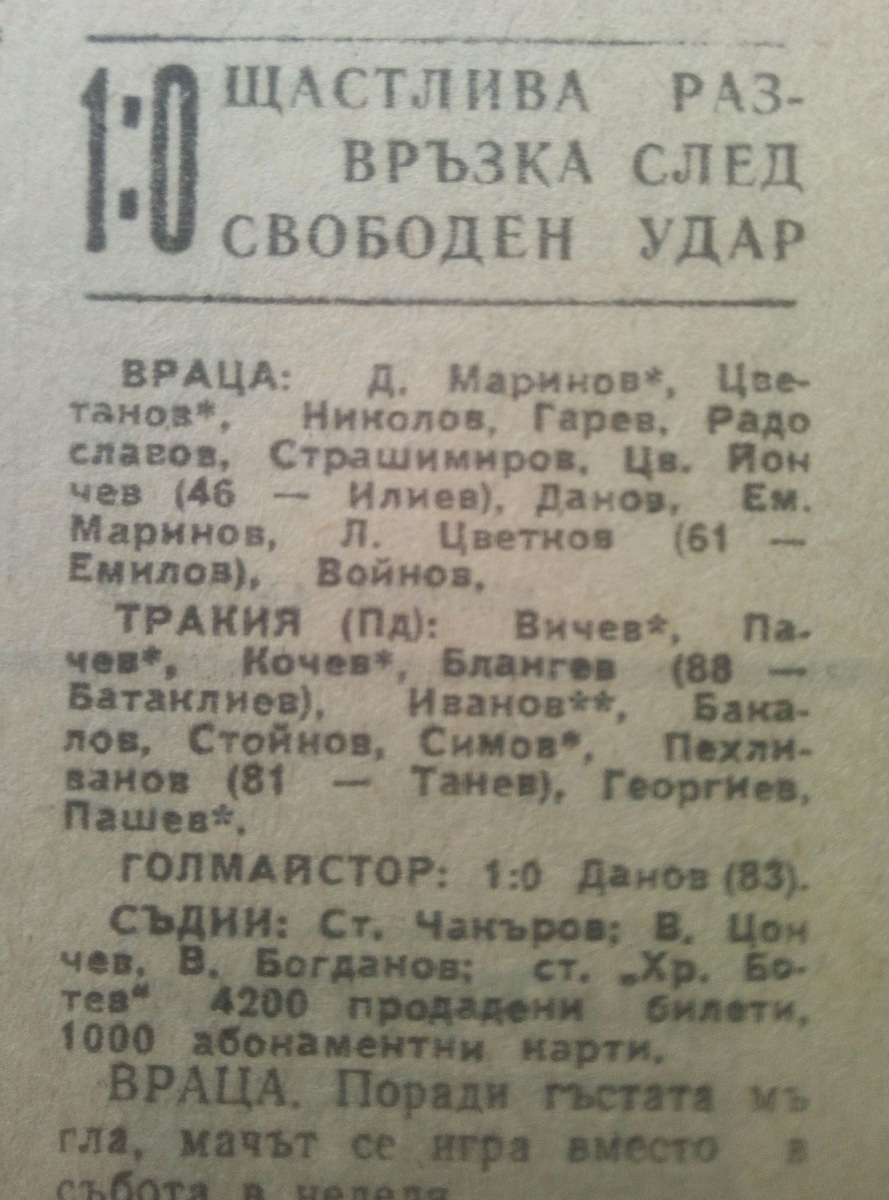 «Враца» Враца - «Тракия» Пловдив - 1:0