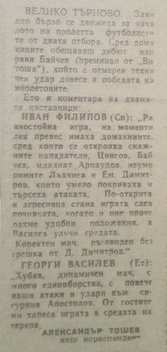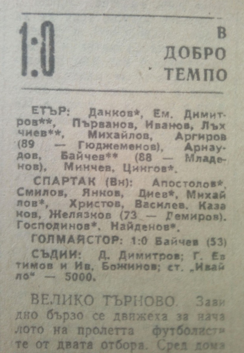 «Этыр» Велико-Тырново - «Спартак» Варна - 1:0
