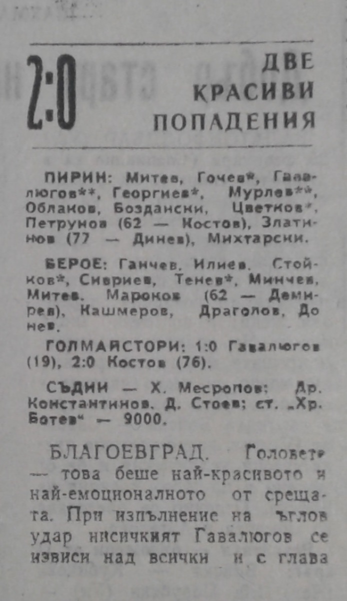 «Пирин» Благоевград - «Берое» Стара-Загора - 2:0