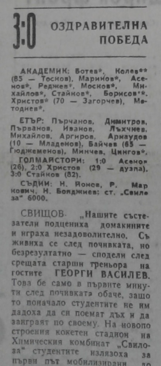 «Академик» Свиштов - «Этыр» Велико-Тырново - 3:0