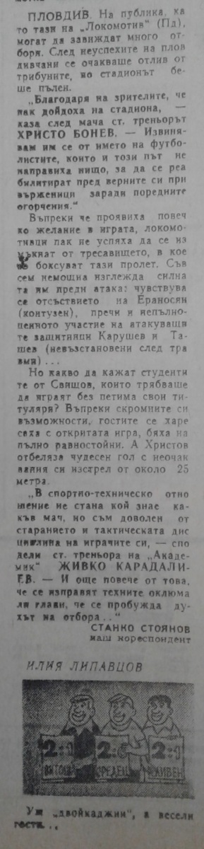 «Локомотив» Пловдив - «Академик» Свиштов - 1:1