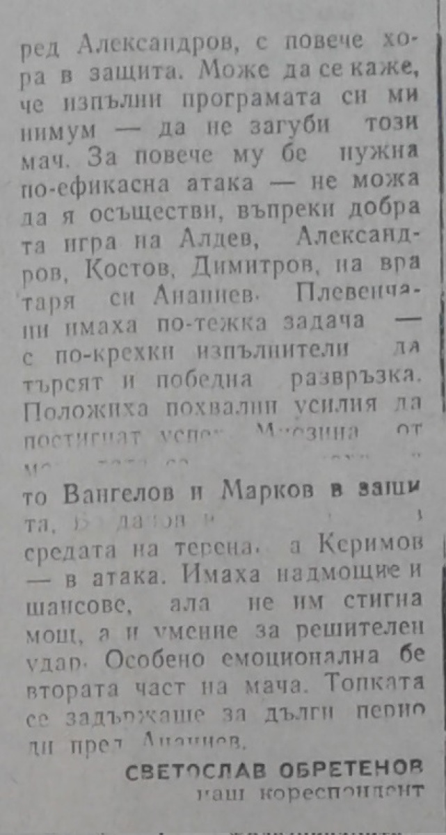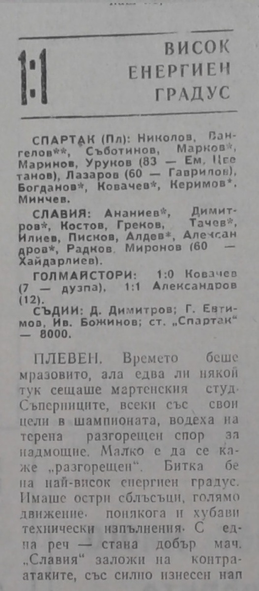 «Спартак» Плевен - «Славия» София - 1:1
