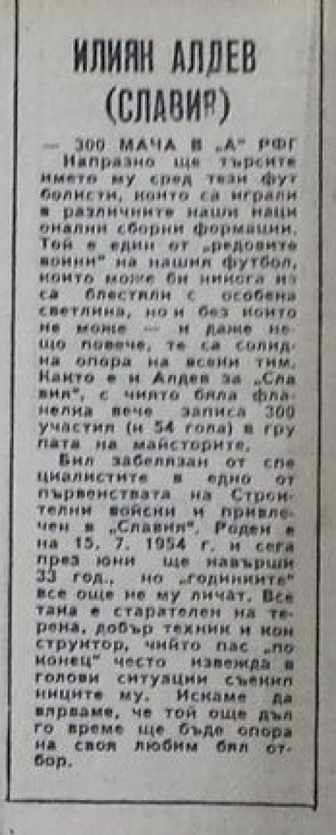 Илко Алдев (Славия) провёл свой 300-й матч в А РФГ