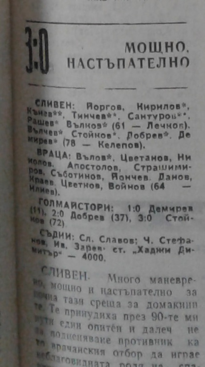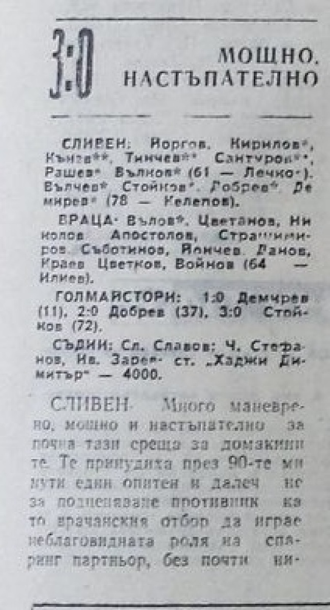 «Сливен» Сливен - «Враца» Враца - 3:0