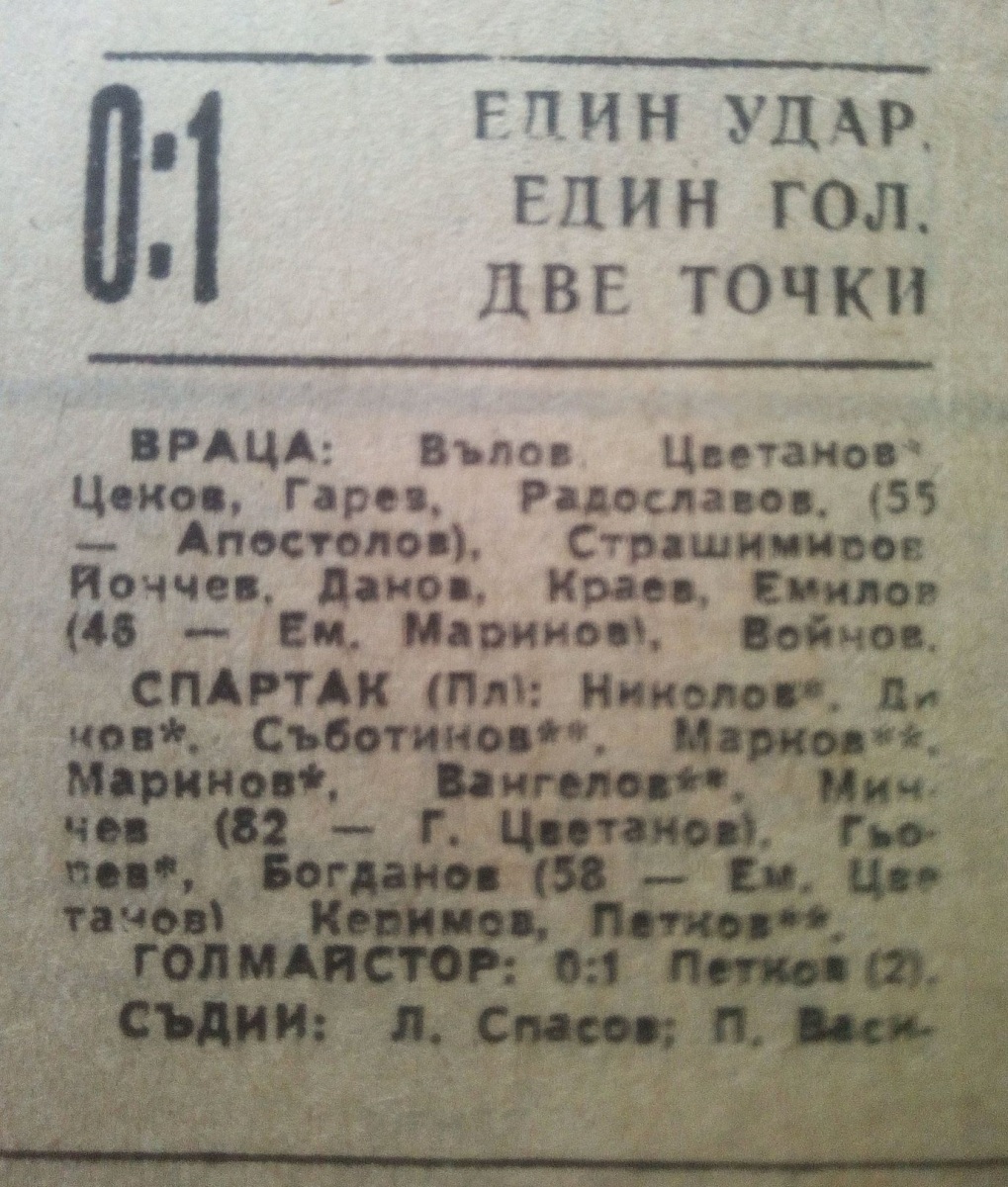 «Враца» Враца - «Спартак» Плевен - 0:1