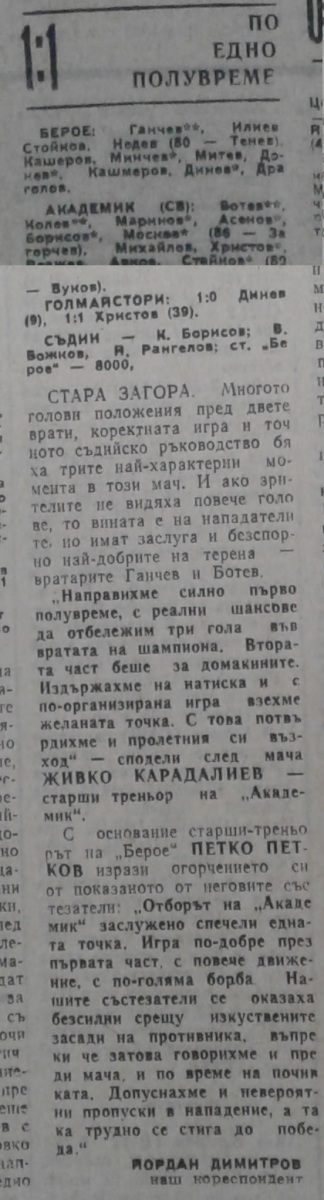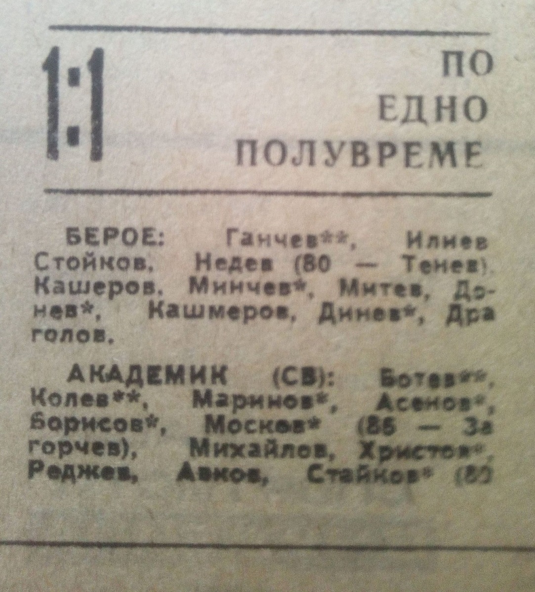 «Берое» Стара-Загора - «Академик» Свиштов - 1:1