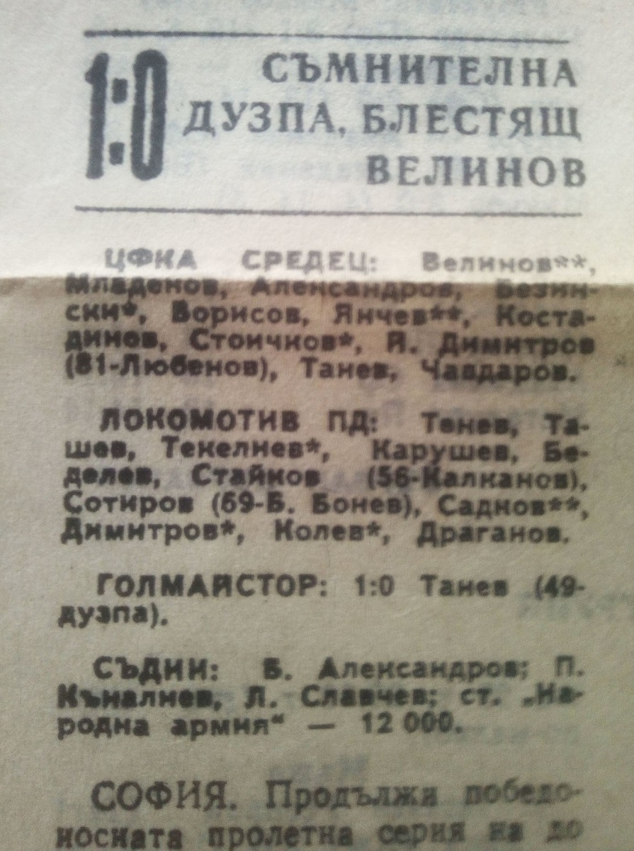 «ЦФКА Средец» София - «Локомотив» Пловдив - 1:0