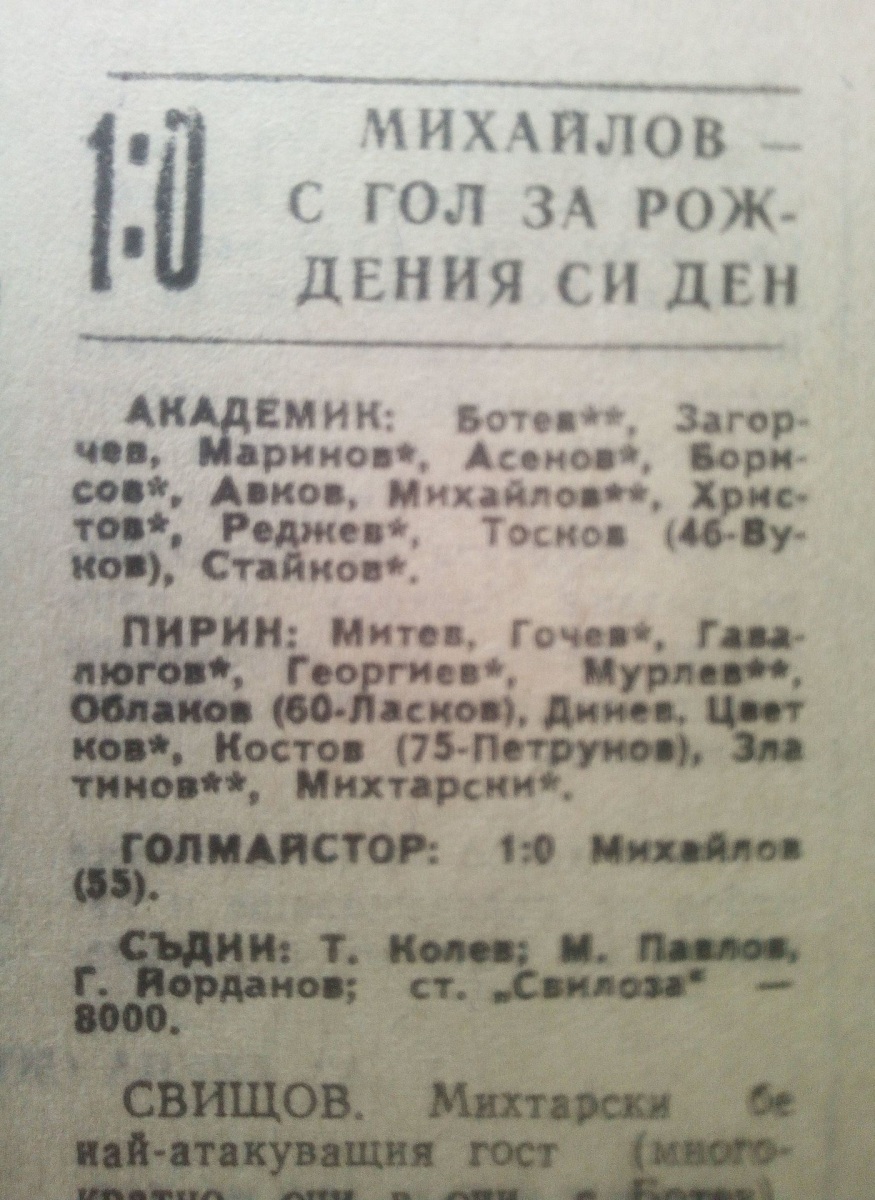 «Академик» Свиштов - «Пирин» Благоевград - 1:0