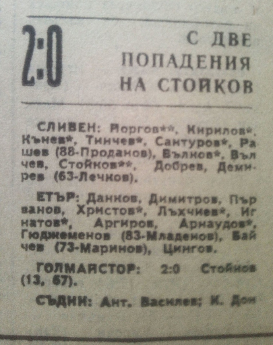 «Сливен» Сливен - «Этыр» Велико-Тырново - 2:0