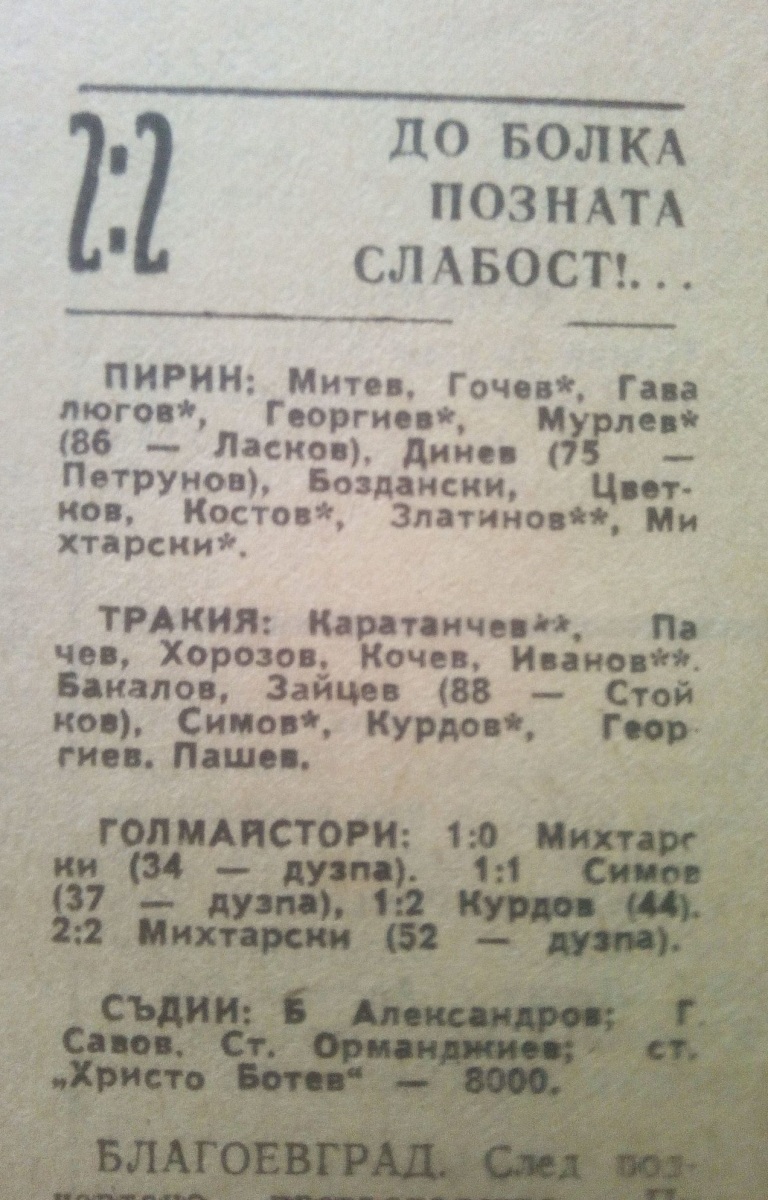 «Пирин» Благоевград - «Тракия» Пловдив - 2:2