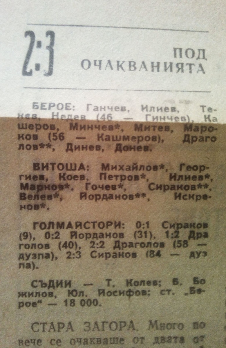 «Берое» Стара-Загора - «Витоша» София - 2:3