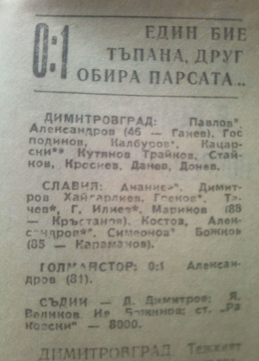 «Димитровград» Димитровград - «Славия» София - 0:1
