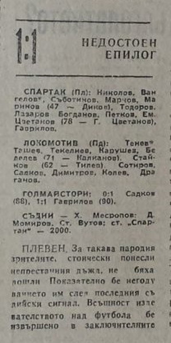 «Спартак» Плевен - «Локомотив» Пловдив - 1:1
